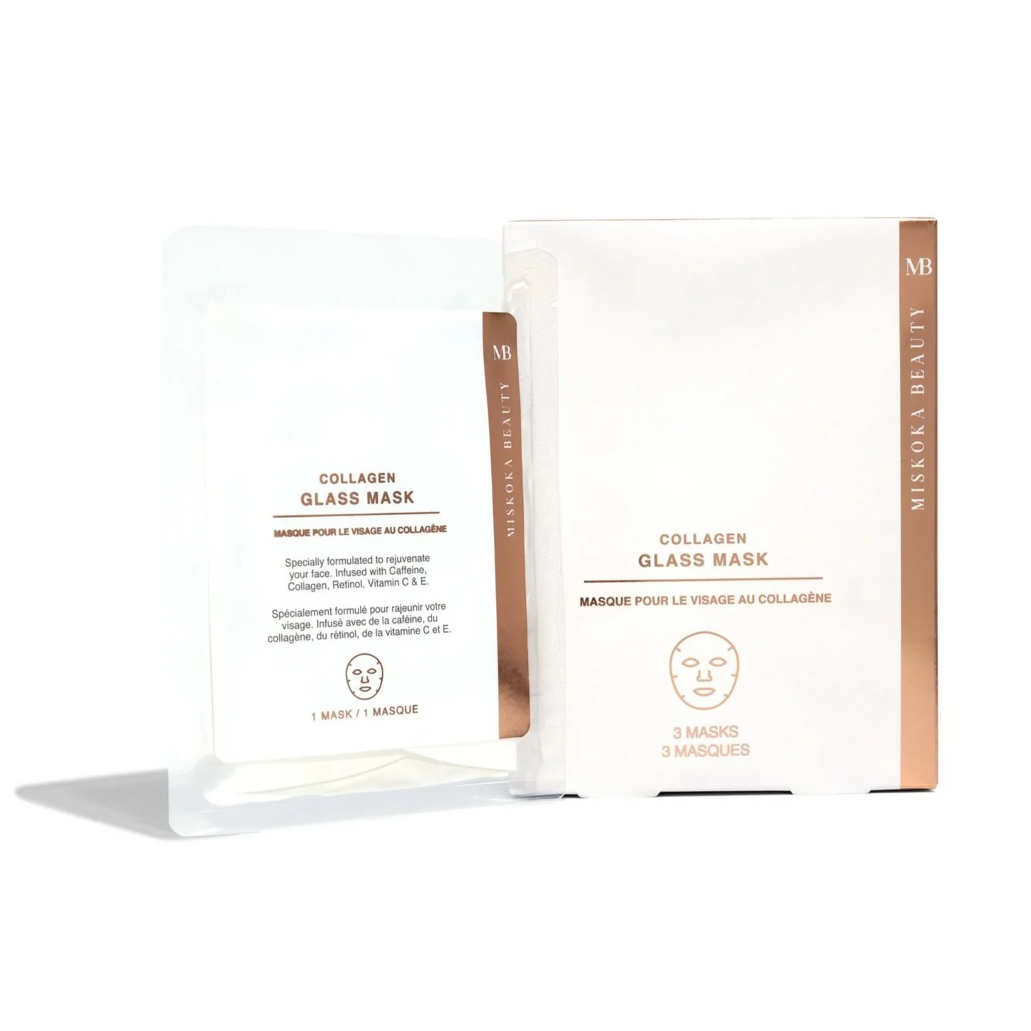 Indulge in the opulence of Miskoka Beauty Collagen Glass Masks—a sublime pathway to attaining the epitome of luxurious glass skin. Immerse yourself in the lavish embrace of these hydrating masks, meticulously crafted and enriched with decadent ingredients such as Caffeine to dispel fatigue, revealing a luminosity that transcends ordinary skincare. Luxuriate in the potent synergy of Collagen, Retinol, Vitamin C, and E, meticulously blended to visibly diminish wrinkles and fine lines, leaving your skin adorned with a velvety smoothness. Elevate your skincare regimen with our Collagen Glass Masks, not only as a transformative indulgence but also as an exquisite addition to your spa services or retail selection. Unveil a radiant allure and immerse yourself in the splendor of achieving glass skin perfection with Miskoka Beauty.
